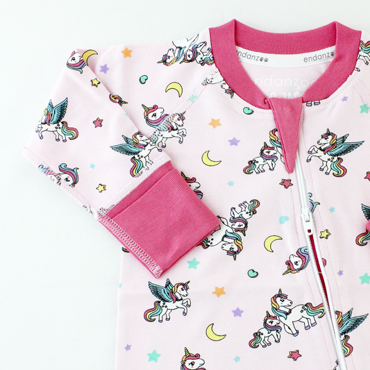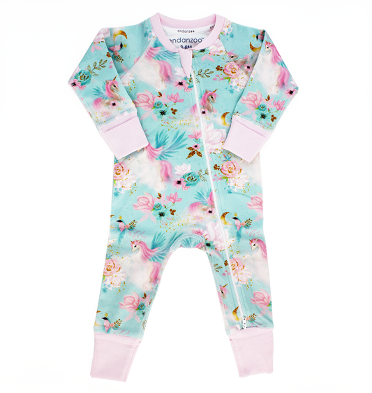 Endanzoo Organic Double Zippered Romper - Mystical Unicorns
