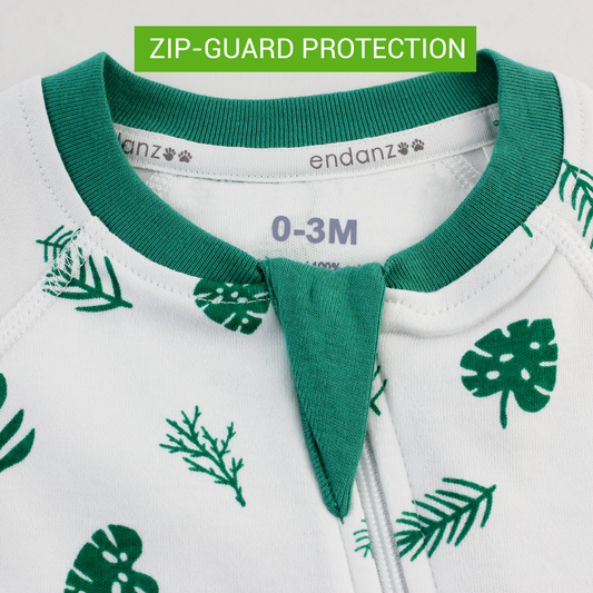 Endanzoo Organic Double Zippered Romper - Tropical Leaves
