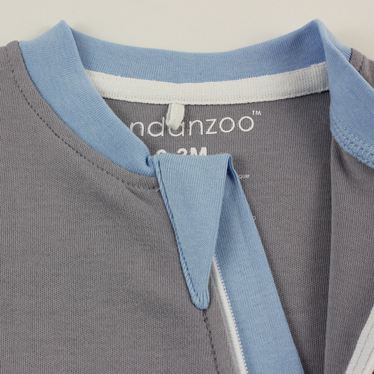 Endanzoo Organic Long Sleeve Double Zippered Romper - Grey w/ Blue