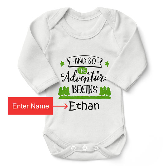 Personalized Organic Baby Bodysuit - Adventure Begins (White / Long Sleeve)