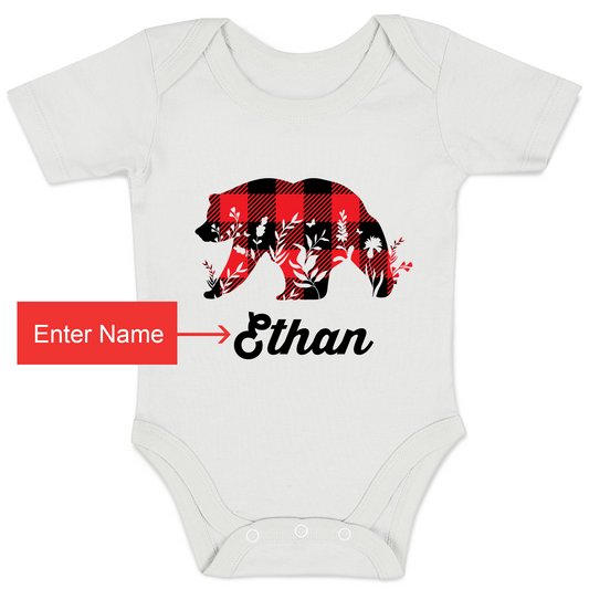 Personalized Organic Baby Bodysuit - Baby Bear (White)