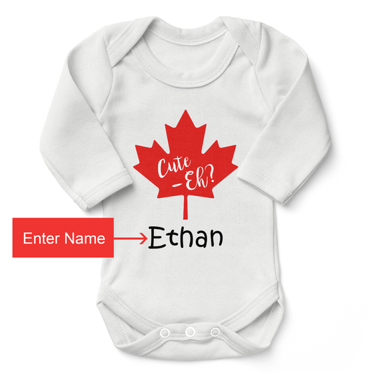 Personalized Organic Baby Bodysuit - Cute Eh (White / Long Sleeve)