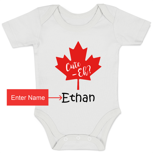 Personalized Organic Baby Bodysuit - Cute Eh (White / Short Sleeve)