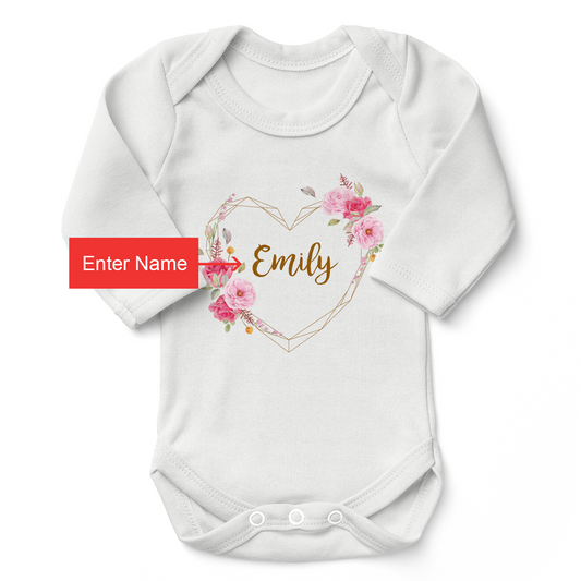 Personalized Organic Baby Bodysuit - Floral Love (White / Long Sleeve)