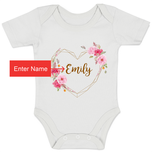 Personalized Organic Baby Bodysuit - Floral Love (White / Short Sleeve)