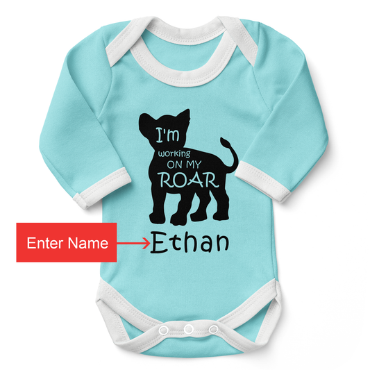 Personalized Organic Baby Bodysuit - Baby Lion (Aqua / Long Sleeve)