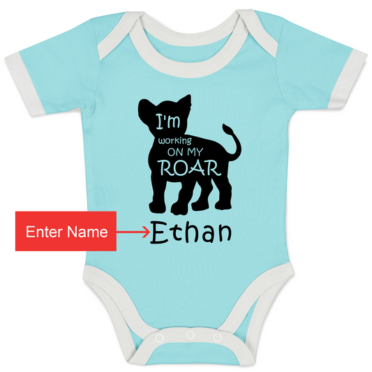 Personalized Organic Baby Bodysuit - Baby Lion (Aqua / Short Sleeve)