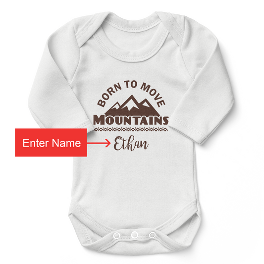 Personalized Organic Baby Bodysuit - Born To Move Mountains (White / Long Sleeve)