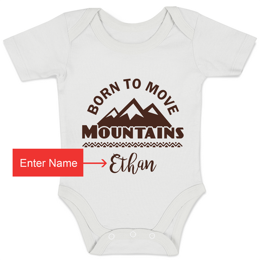 Personalized Organic Baby Bodysuit - Born To Move Mountains (White / Short Sleeve)