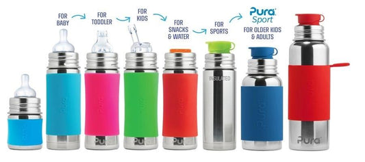 Pura Kiki 11oz Infant Stainless Steel Bottle (Aqua with sleeves)