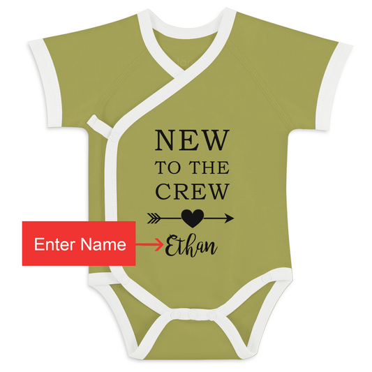 Personalized Organic Baby Kimono Bodysuit - New to the Crew (Green)