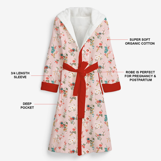 Endanzoo Organic Cotton Maternity Robe - Pink Blossom