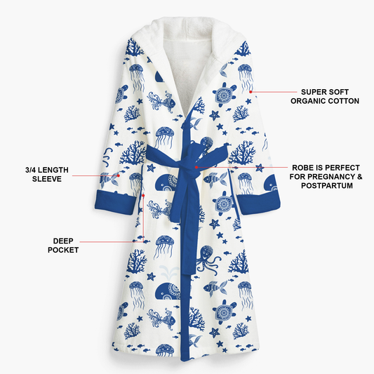 Endanzoo Organic Cotton Maternity Robe - Deep Sea