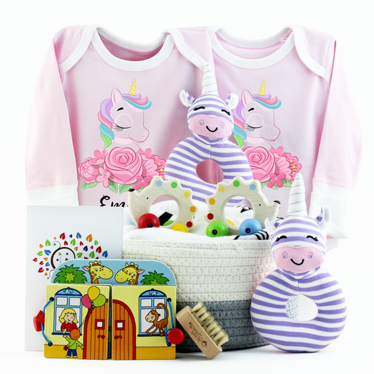 Zeronto Twin Baby Girl Gift Basket - Little Unicorn Princesses