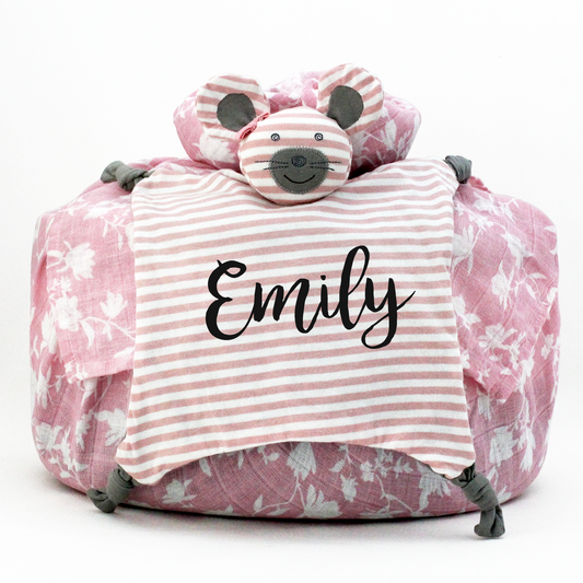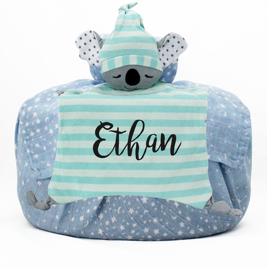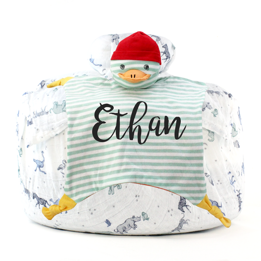 Explore the perfect blend of sustainability and individuality with our uniquely personalized collection of organic new baby gift baskets.