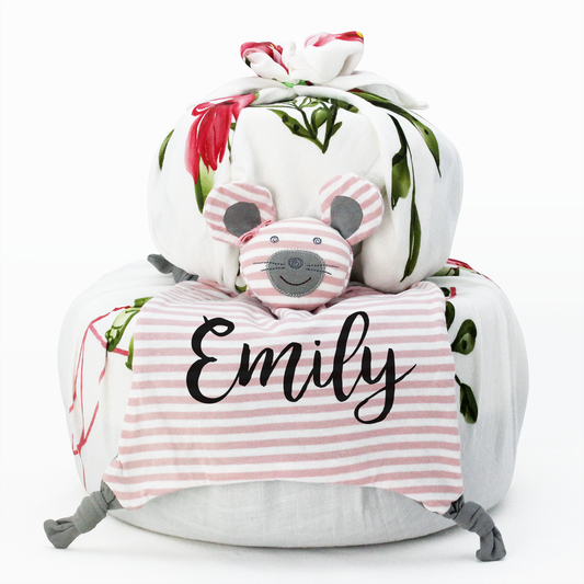 Zeronto Luxury Baby Girl Gift Basket 2-Tier (Tower of Roses)