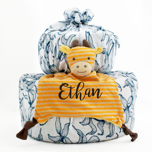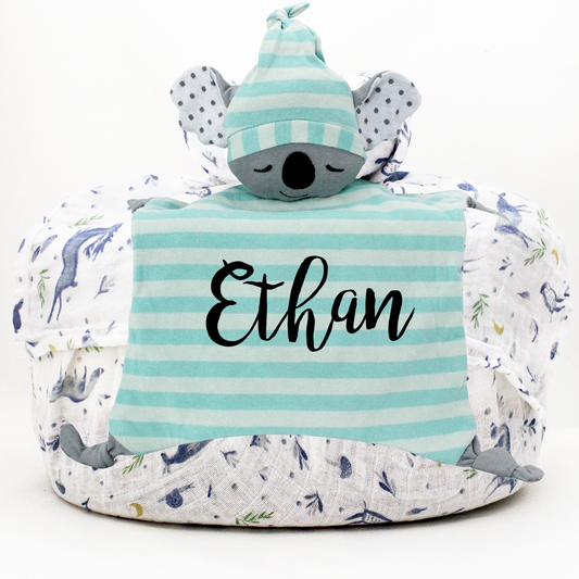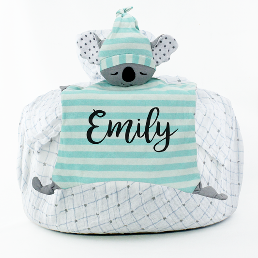 Explore the perfect blend of sustainability and individuality with our uniquely personalized collection of organic new baby gift baskets.