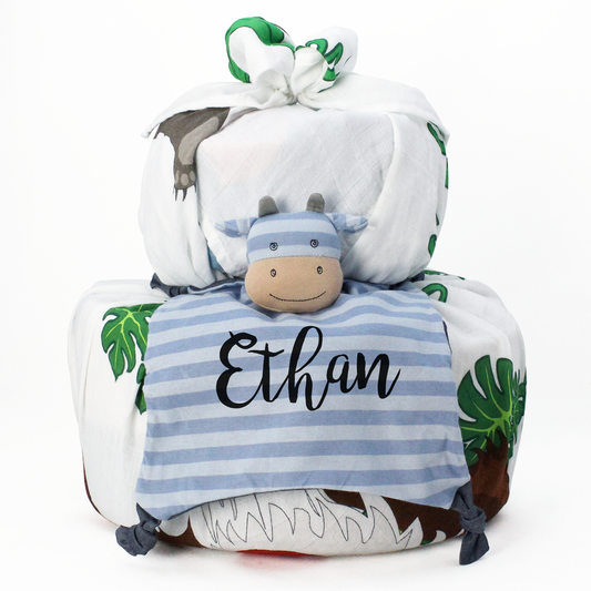Zeronto Luxury Baby Boy Gift Basket 2-Tier - Little Explorer in the Jungle & the Sea