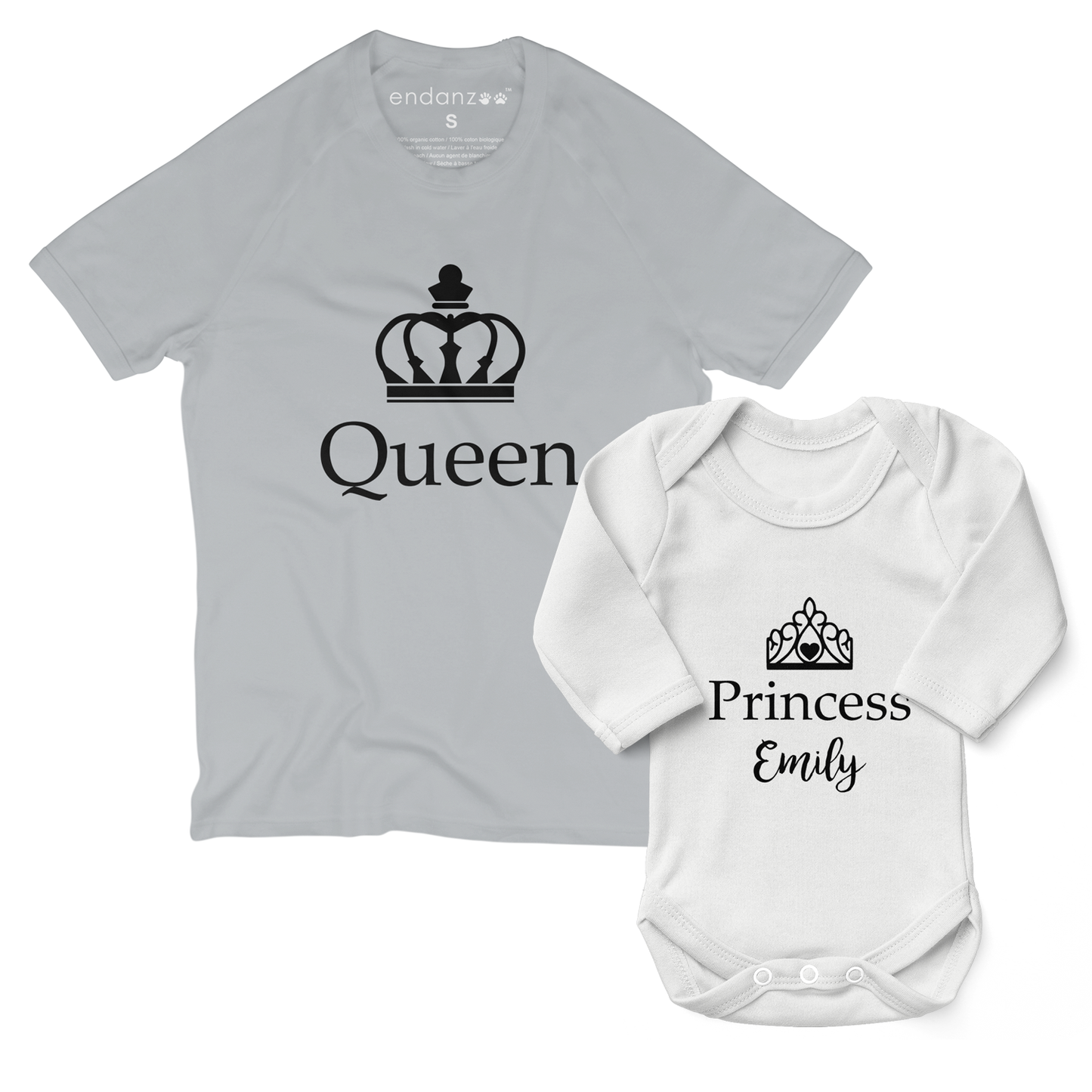 Personalized Matching Mom & Baby Organic Outfits - Queen & Princess