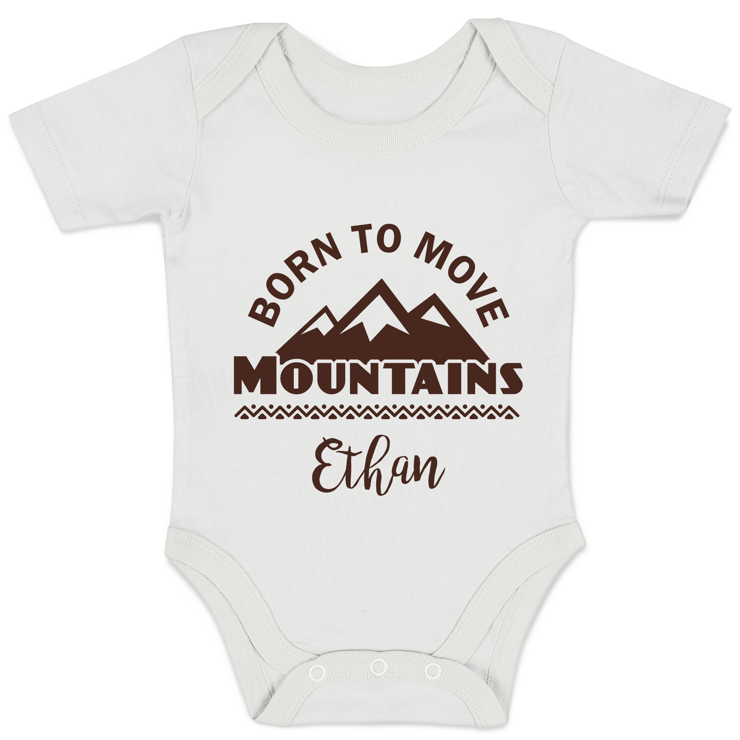 Personalized Organic Baby Bodysuit - Born To Move Mountains (White / Short Sleeve)