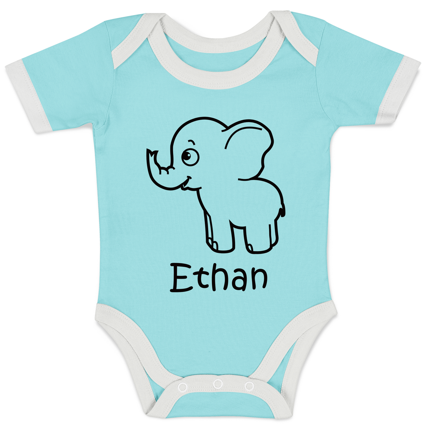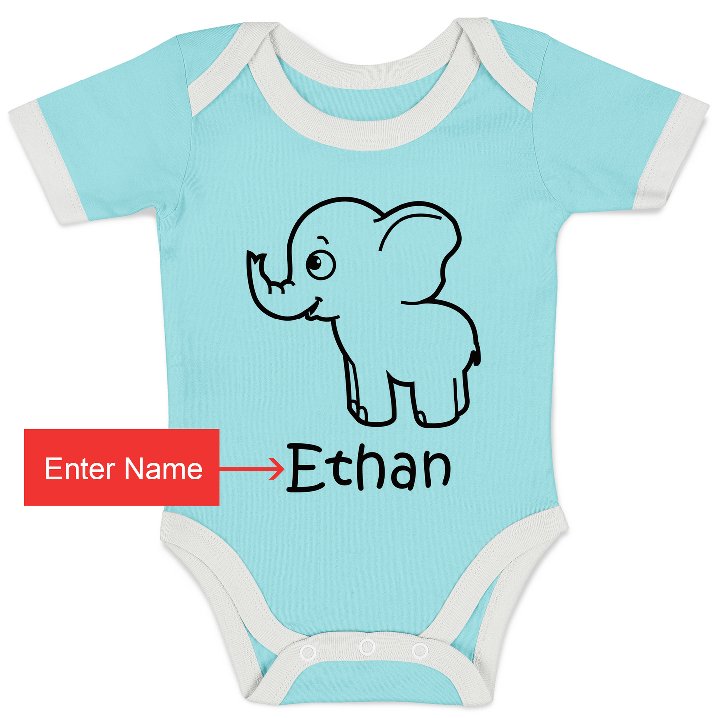 Personalized Organic Baby Bodysuit - Little Elephant (Aqua / Short Sleeve)