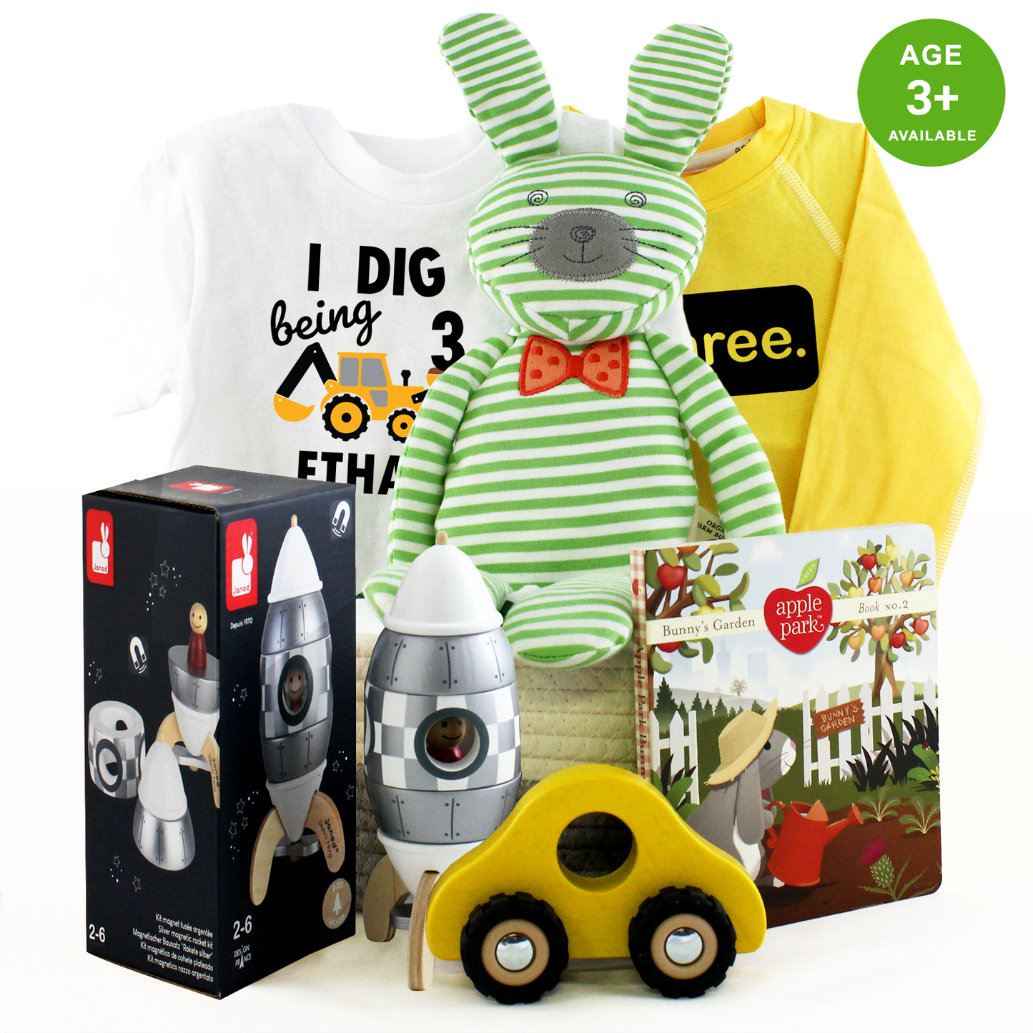 Get ready to dig into birthday fun with this mighty “Excavator 3” bundle! With personalized tees, a magnetic rocket, and cuddly pals, your little builder will be geared up for big-time adventures. It’s a truckload of joy for your favorite three-year-old!
