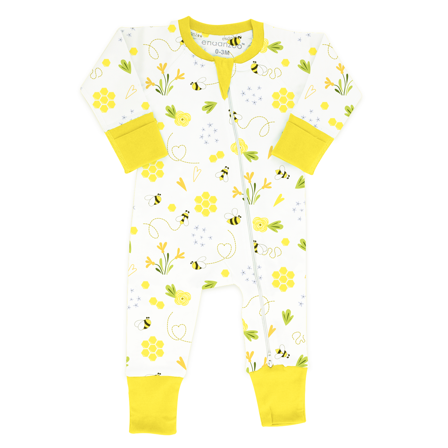 This ultra soft and comfortable kimono bodysuit from Endanzoo is made from premium 100% GOTS certified organic cotton. Featuring lap shoulder and Irritation-free flat-seam stitches. Azo-free dyes. - Endanzoo Classic Snuggle Organic Long Sleeve Double Zippered Romper - Bumblebee