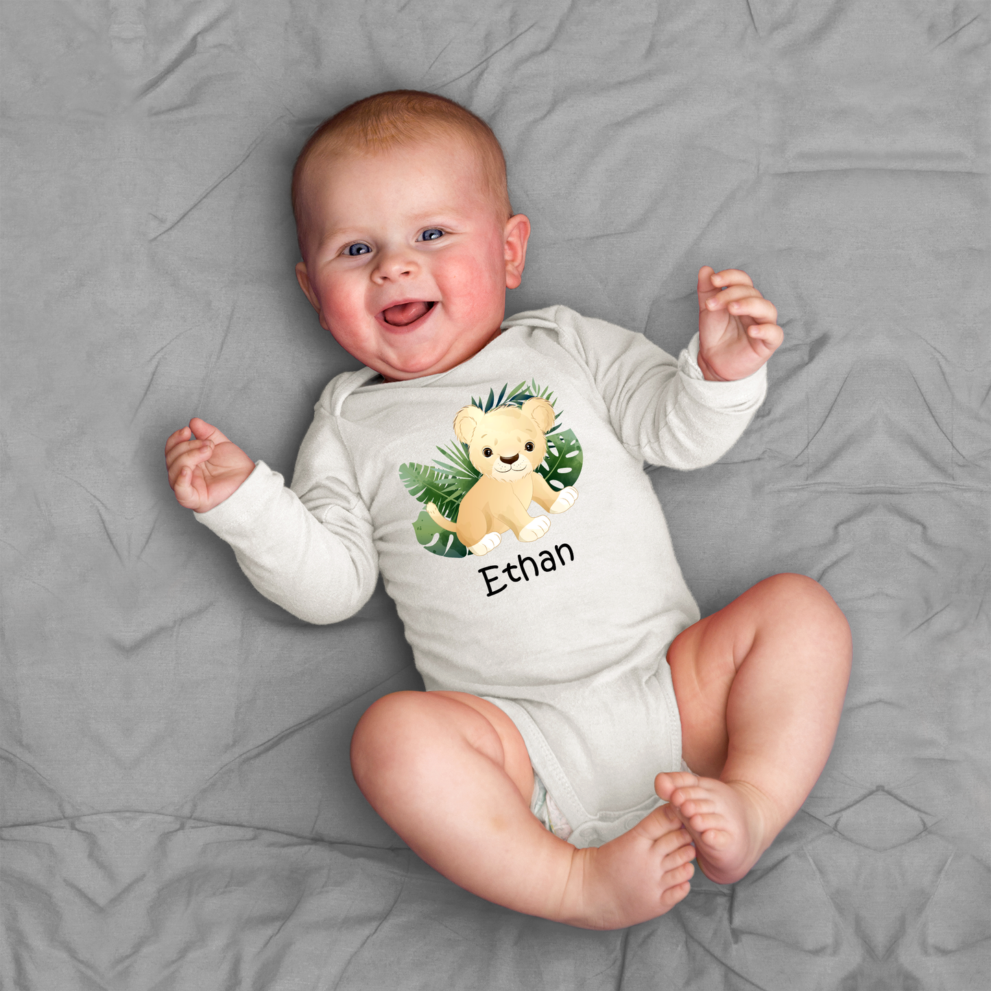 Personalized with Baby's Name. This finest Baby Bodysuit is made with soft and premium organic cotton with luxurious feel. Azo-free dyes and eco-friendly water-based inks. - Endanzoo Organic Clothing Matching Set - Jungle Cuties - Bodysuit, Pant & Beanie