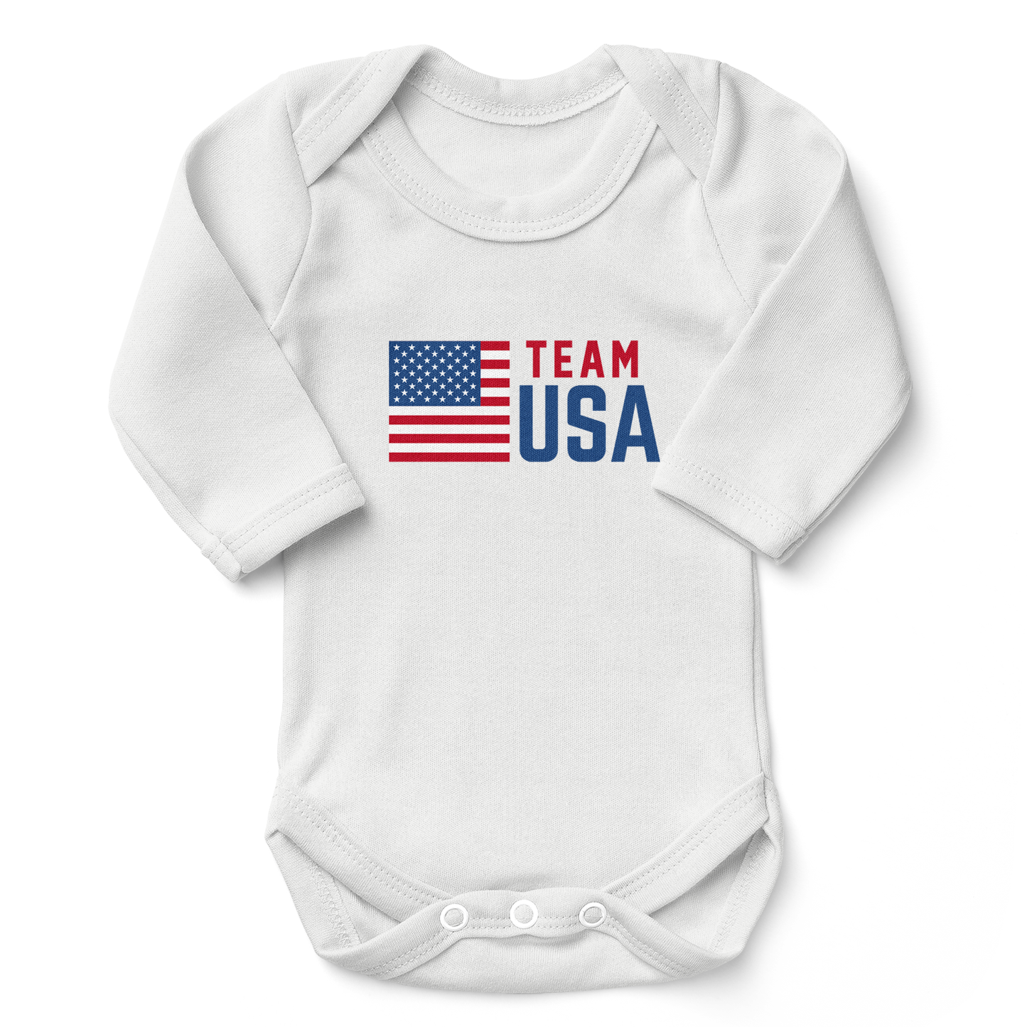 Personalized with Baby's name and number (backside) and Team name (frontside). This finest Baby bodysuit is made from soft and premium organic cotton with luxurious feel. Azo-free dyes and eco-friendly water-based inks. - Endanzoo Organic Baby Romper - Team USA