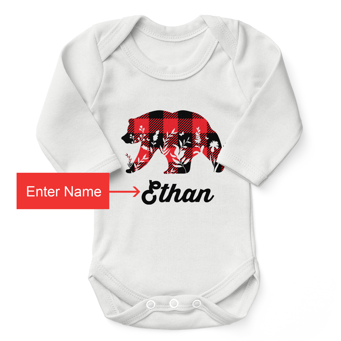 Personalized with Baby's name. This finest Baby Bodysuit is made with soft and premium organic cotton with luxurious feel. Azo-free dyes and eco-friendly water-based inks. - Endanzoo Organic Long Sleeve Bodysuit - Safari Hugs